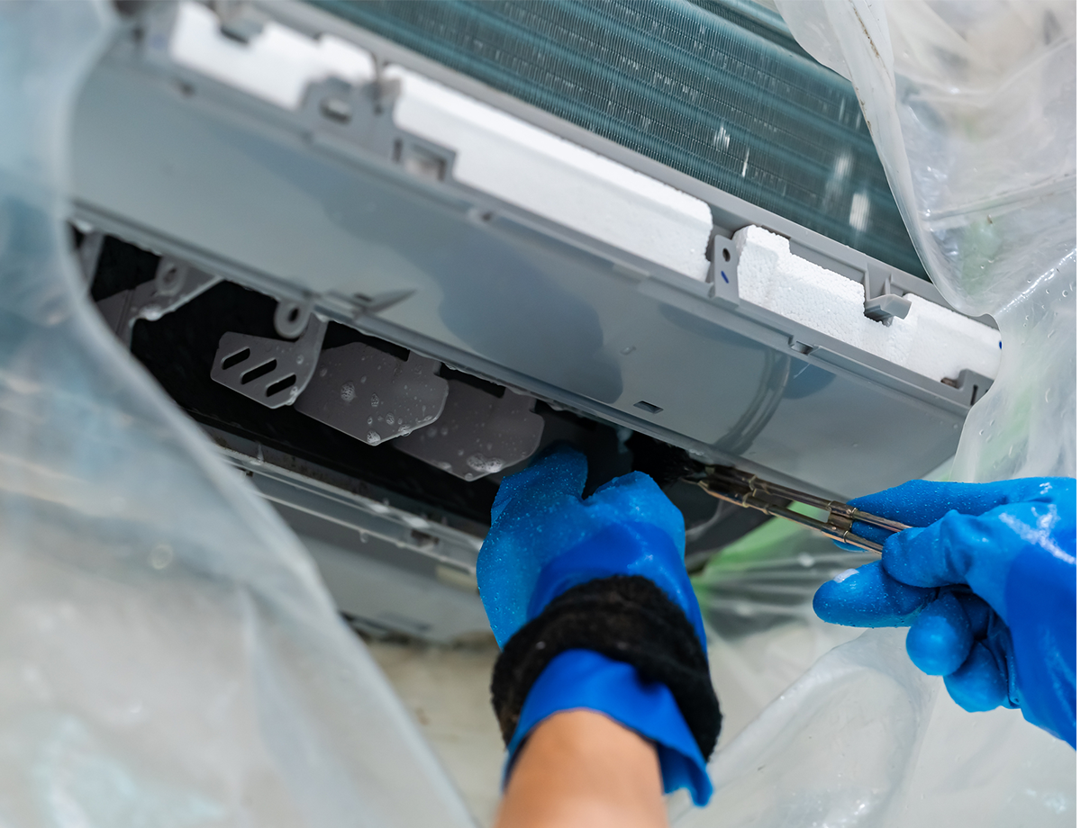 吹き出し口からの嫌な臭いは、エアコン内部の本格洗浄で解決、経年の臭いやハウスダストをしっかり除去致します。
